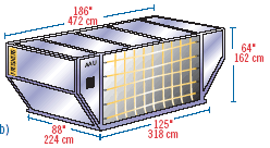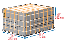Can be loaded to 96″ (162 cm) and 118″ (300 cm) on freighters